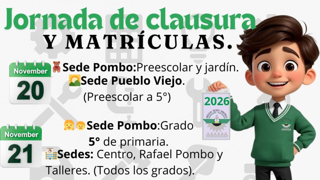 INSCRIPCIONES 2026 ALUMNOS NUEVOS (CUPOS PARA GRADOS PREESCOLAR A DÉCIMO) Se informa a la comunidad Educativa el proceso de inscripción de estudiantes nuevos para grados PREESCOLAR A DÉCIMO.