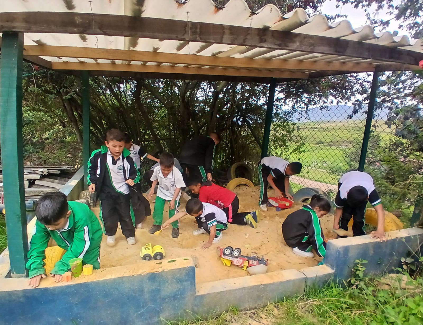 - La sede posee una amplia infraestructura con 3 aulas de clases, aula de informática, biblioteca, restaurante escolar, área de juegos y amplias zonas verdes; creando así condiciones favorables para el desarrollo de actividades académicas, culturales y deportivas indispensables para fortalecer el desarrollo del aprendizaje de los estudiantes.